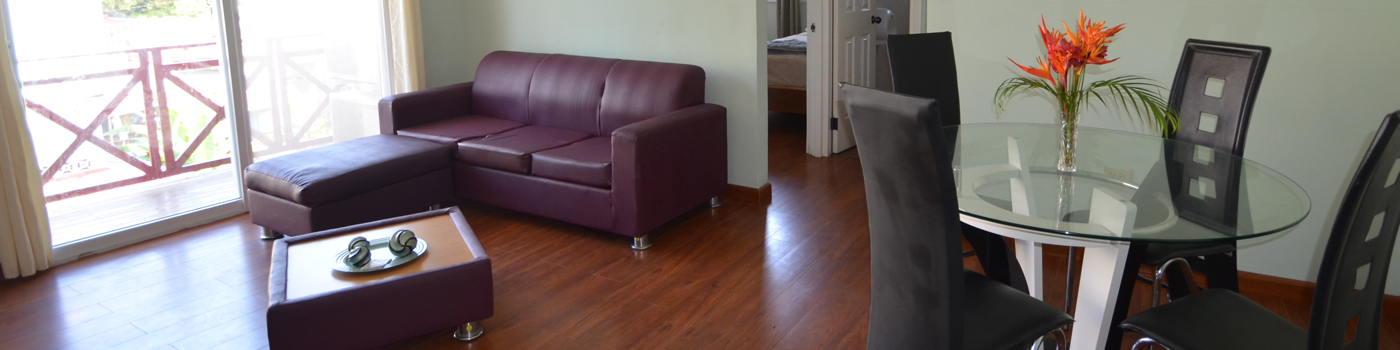 - Furnished living/dining with queen size sofa bed, Othoman, side tables and dining table.